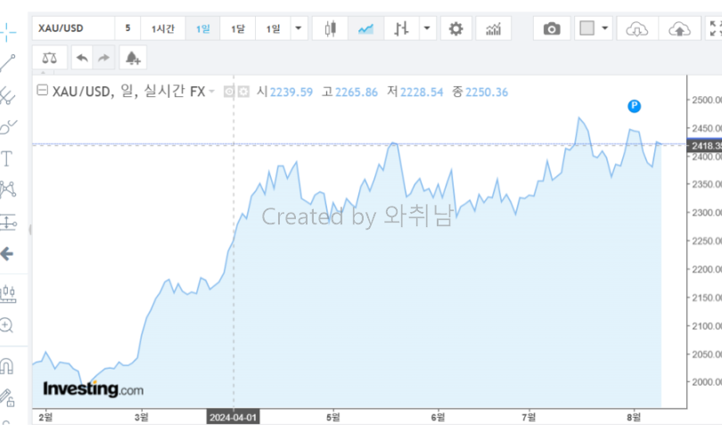 현재 국제 금 시장에서는 온스당 2,400달러선이 중요한 심리적, 기술적 분기점이 넘어 2,750달러를 향해 하고 있습니다. . 이는 역사적으로도 매우 높은 수준으로, 이 가격대를 돌파하고 유지할 수 있을지가 앞으로의 시장 방향성을 결정하는 핵심 변수가 될 것으로 보입니다.