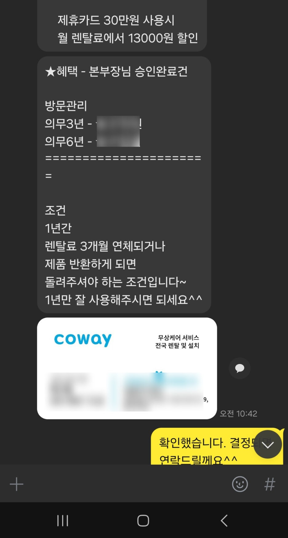 여러개 업체 중에 제가 선택한 곳은 본부장님 승인까지 별도로 받아서 최대 혜택을 내준 업체였습니다.